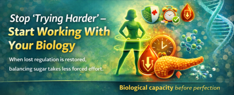 Summary Type 2 diabetes is not simply a dietary problem. Blood glucose regulation emerges from an integrated system involving stress hormones, hepatic glucose output, skeletal muscle disposal capacity, sleep and circadian timing, and cumulative inflammatory and environmental load from air pollution (⁹,¹⁰) and endocrine-disrupting chemicals (¹¹,¹²). When regulatory capacity is exceeded, aggressive lifestyle change can … Continue reading Blood Sugar First Aid – When “Doing Everything Right” Makes Blood Sugar Worse